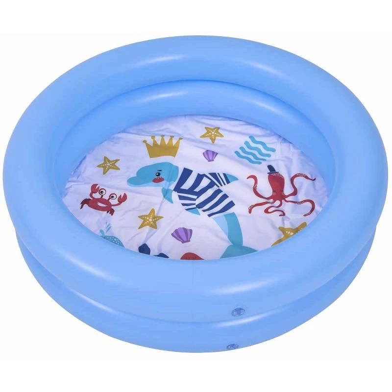Basen posiada kolorowe dno z nadrukowanymi rysunkami przedstawiającymi wodny świat i morskie zwierzęta.