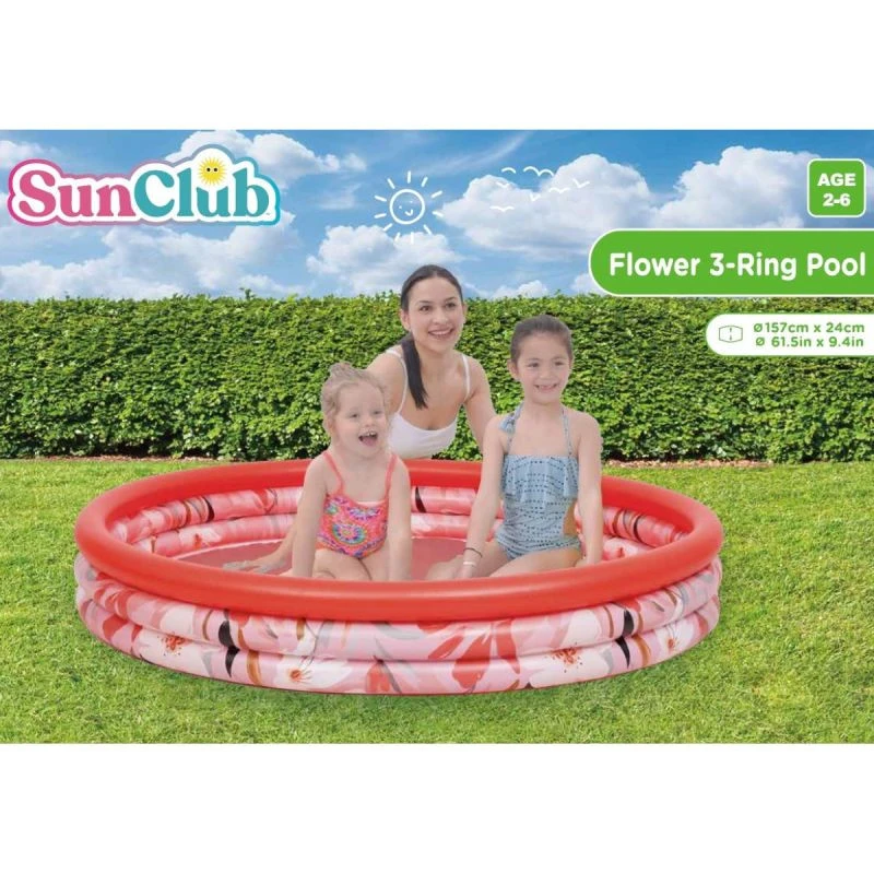 BASEN DZIECIĘCY 3- PIERŚCIENIOWY KWIATY 157x24CM 51465 to idealny wybór dla najmłodszych na ciepłe, letnie dni. Dzięki trzem pierścieniom zapewnia stabilność i bezpieczeństwo podczas zabawy w wodzie. Wykonany z wytrzymałego PVC, odporny na promieniowanie UV i uszkodzenia – świetnie sprawdzi się w ogrodzie, na balkonie lub tarasie.