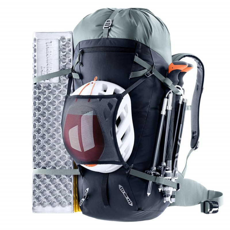 - Kromě toho je klopa vybavena odnímatelným síťovaným držákem na helmu, který lze přenést i na přední stranu batohu.