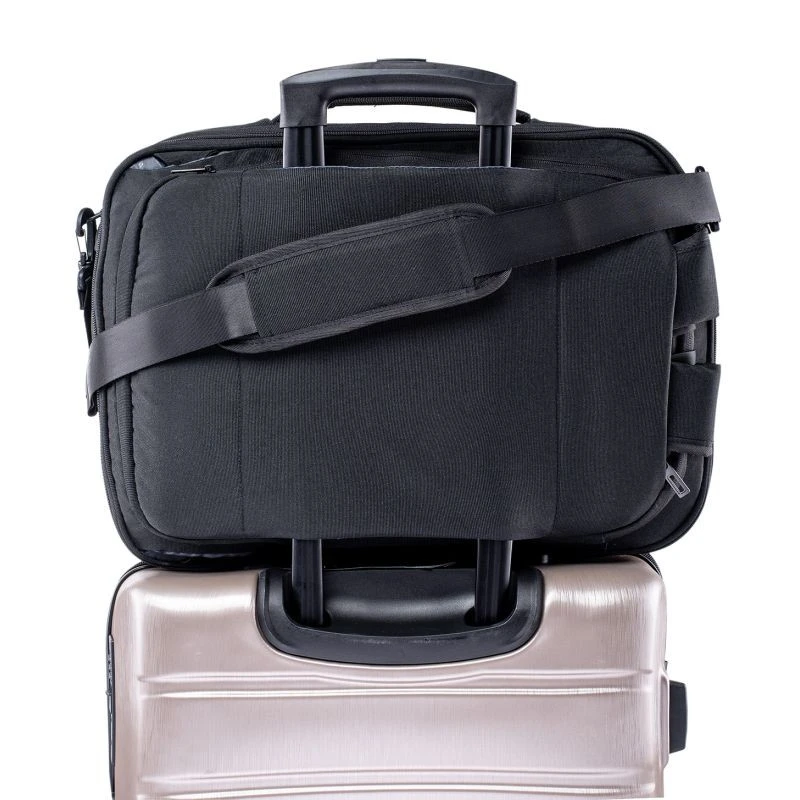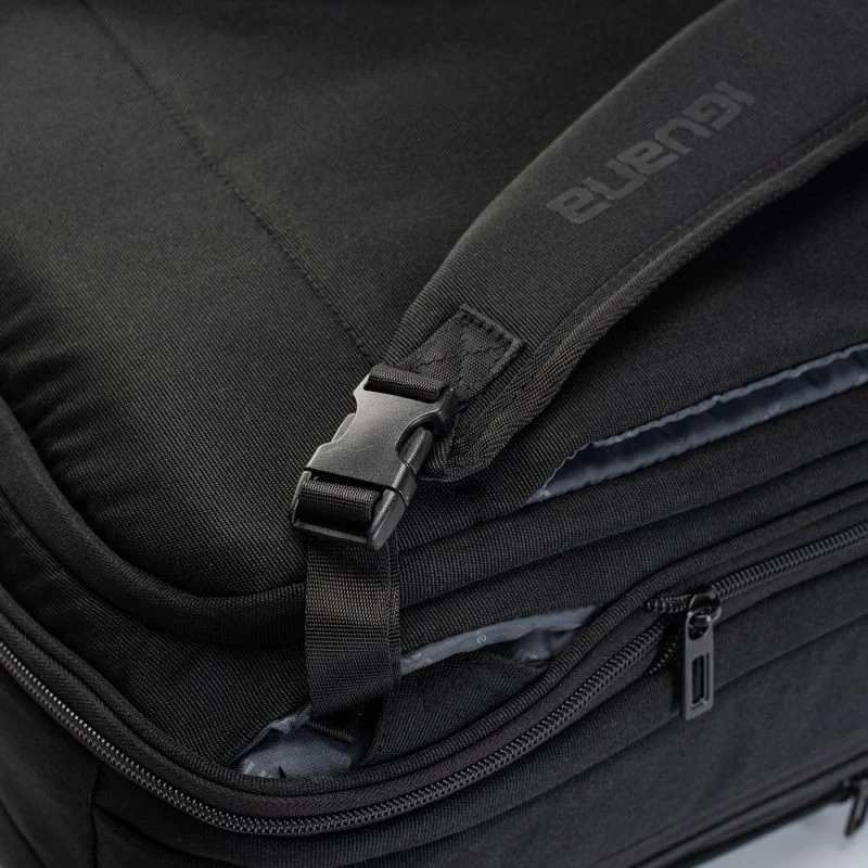 CALATOR to plecak, dla tych którzy często podróżują. Posiada pojemną komorę główną, do której możesz dostać się za pomocą suwaka bocznego oraz głównego jak do walizki. W komorze znajduje się organizer oraz mała kieszonka zapisana na zamek błyskawiczny. Odpinany, regulowany pasek przekształci plecak w torbę, którą możesz transportować za pomocą krótkiego uchwytu. CALATOR posiada specjalną kieszeń na laptop, dzięki temu możesz bezpiecznie przetransportować swój sprzęt. To nie koniec zalet tego modelu. Chowane szelki nie przeszkadzają w przenoszeniu plecaka przekształconego w torbę. Jeśli czeka Cię dalsza podróż plecak CALATOR posiada możliwość umieszczenia go na wysuwanej rączce od walizki. Na froncie umieszczono kilka kieszeni. Do jednej możesz schować mokry parasol, gdyż jest wykończona od wewnątrz wodoodpornym materiałem. Druga wyściełana miękkim materiałem pomieści okulary oraz power bank. Kolejna pomieści inne potrzebne drobiazgi podczas podróży l