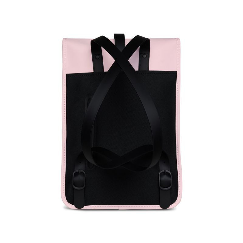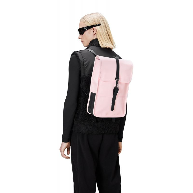 - Batoh Mini je vyroben z nepromokavé PU tkaniny, která je charakteristická pro značku Rains a je navržena tak, aby byla pevná, odolná a příjemná na dotek.