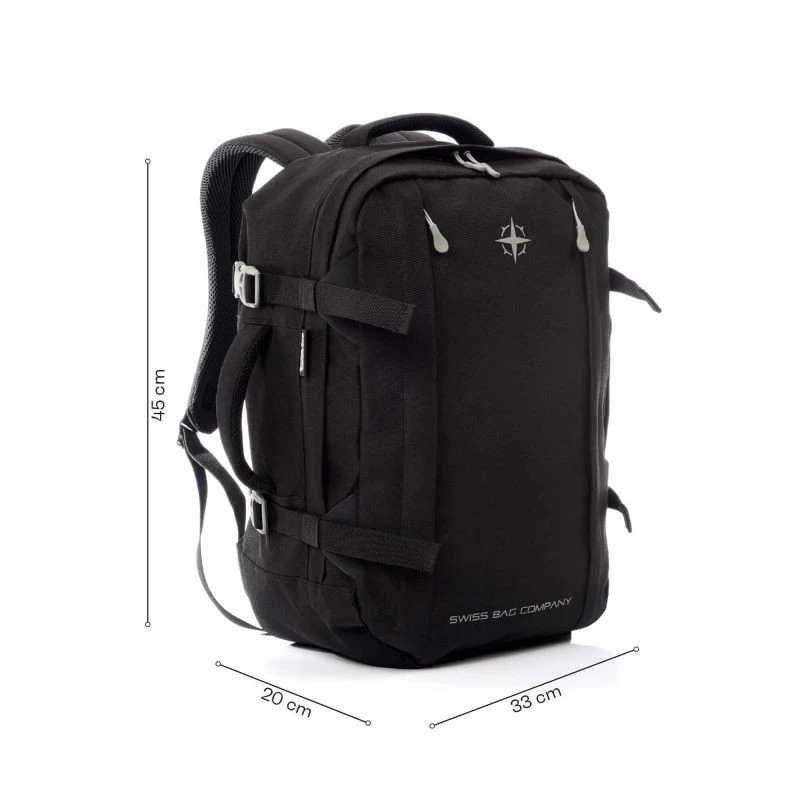 Batoh SwissBags Cointrin je spolehlivým společníkem na každé cestě a díky svým rozměrům 45x33x20 cm dokonale vyhovuje požadavkům na příruční zavazadla většiny leteckých společností. Je vyroben z vysoce kvalitního polyesteru, který zaručuje trvanlivost a odolnost proti poškození, a díky svému objemu 35 litrů pojme všechny vaše nezbytnosti.