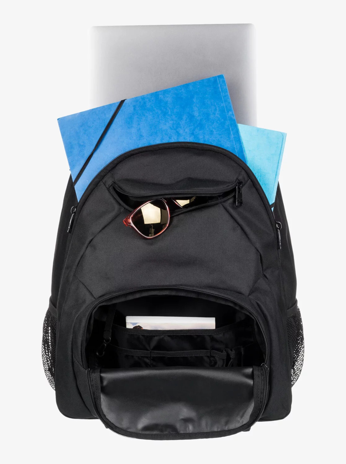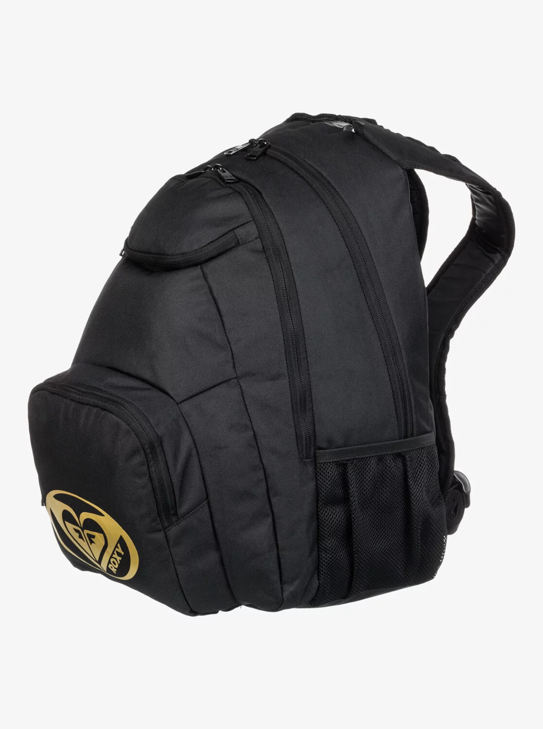 Batoh je ozdoben bavlněnou nášivkou a potiskem loga Roxy.