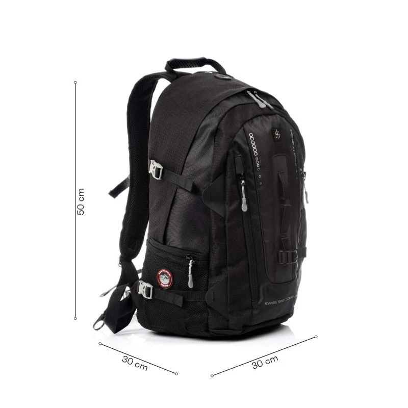 - Je vybaven speciálním zapínáním na přední straně, krásným švýcarským logem a 2 přihrádkami otevíranými na zip.