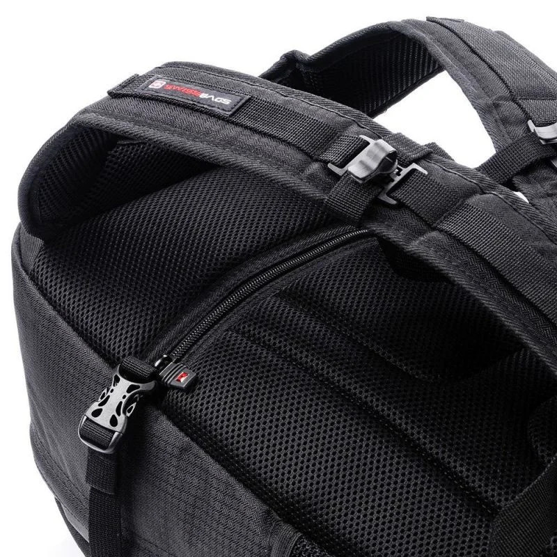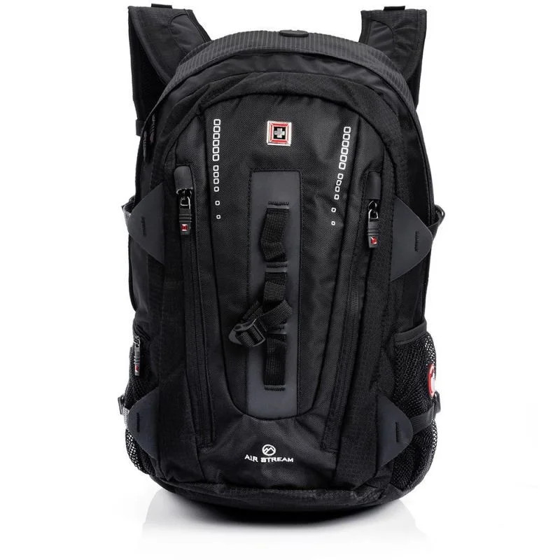 - Je vybaven speciálním zapínáním na přední straně, krásným švýcarským logem a 2 přihrádkami otevíranými na zip.