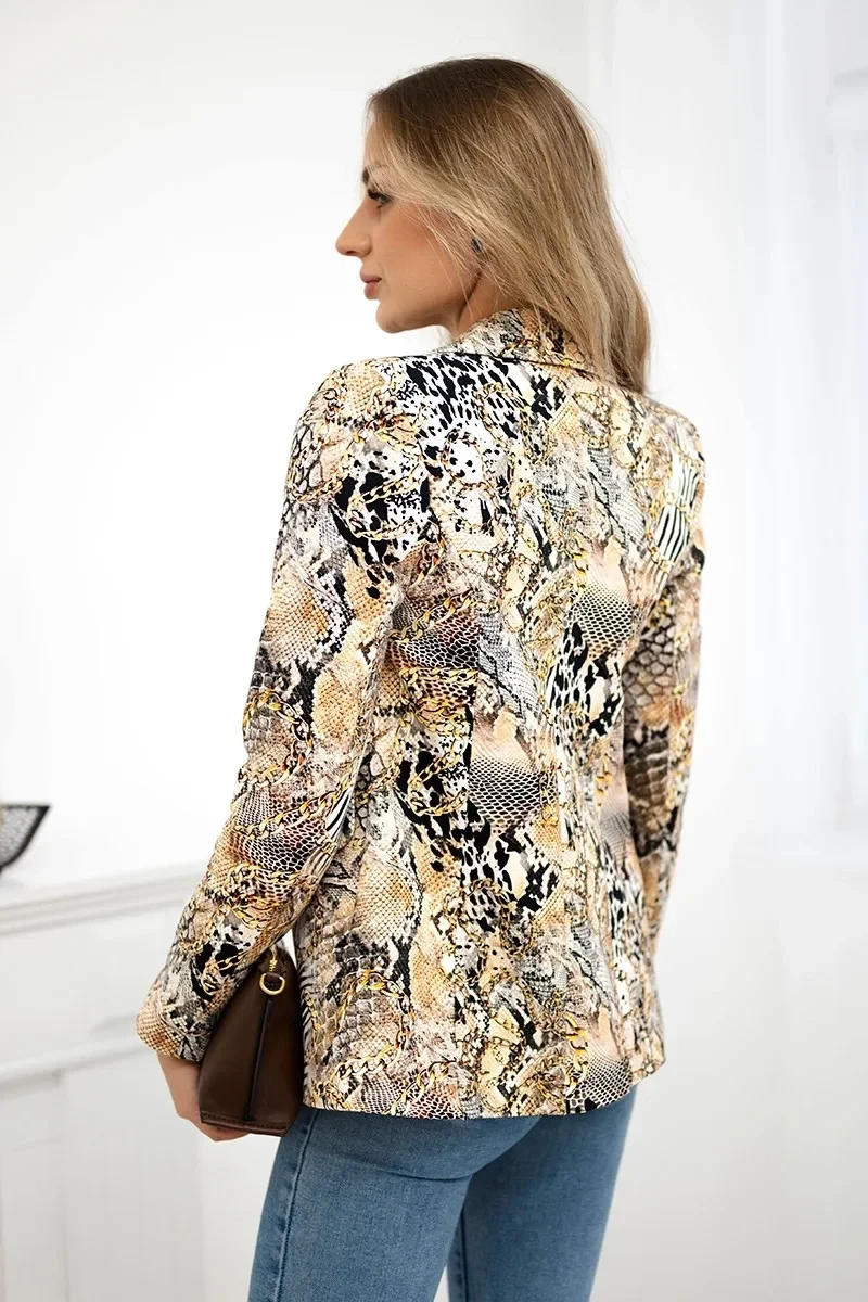 Bavlněné sako s potištěným knoflíkem je stylovým prvkem šatníku, který kombinuje klasický styl s nádechem moderny. Vyrobeno z vysoce kvalitní bavlny, zajišťuje pohodlí při nošení, ideální na celý den. Jedinečný potisk mu dodává osobitý charakter a odlišuje se od klasických modelů. Zapínání na knoflíky podtrhuje elegantní střih a dobře ušitý střih perfektně sedí na postavě a podtrhuje její přednosti. Je to všestranná volba pro různé příležitosti – od příležitostných schůzek až po poloformální události. Skvěle se hodí jak k rovným kalhotám, tak k džínám a dodává celému looku módní akcent. Ideální pro lidi, kteří oceňují pohodlí a jedinečný styl.. Sako má podšívku. Sako je k dispozici ve velikostech M, L, XL.