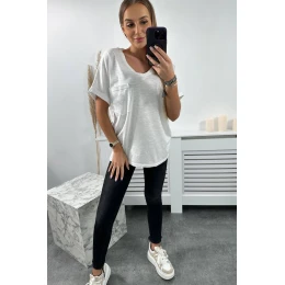 Bavlněná halenka s výstřihem do V a kapsičkou je ideální pro letní dny. Vyrobeno z bavlny pro větší pohodlí. Výstřih do V dodává halence ženský vzhled, zatímco náprsní kapsa jí dodává ležérní nádech. Taková halenka je ideální pro každodenní i formálnější outfity a je mimořádně univerzálním kouskem šatníku. Velikost je univerzální a vyhovuje dámám, které nosí velikost S, M nebo L.