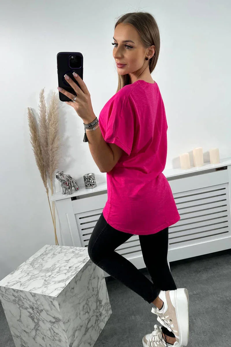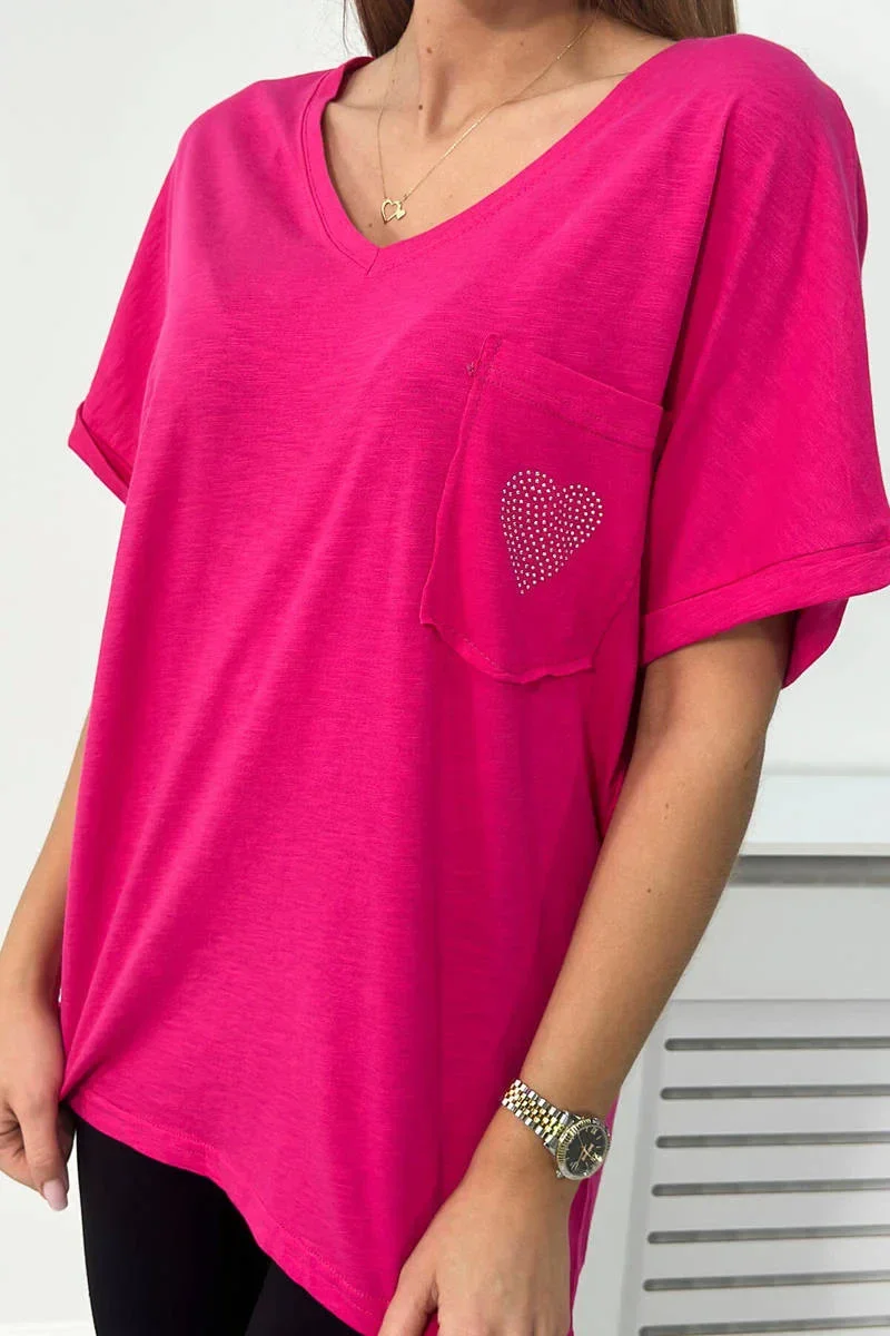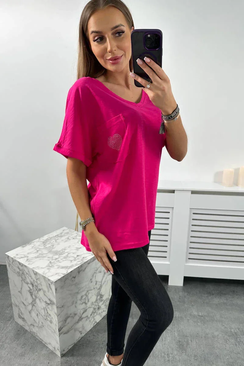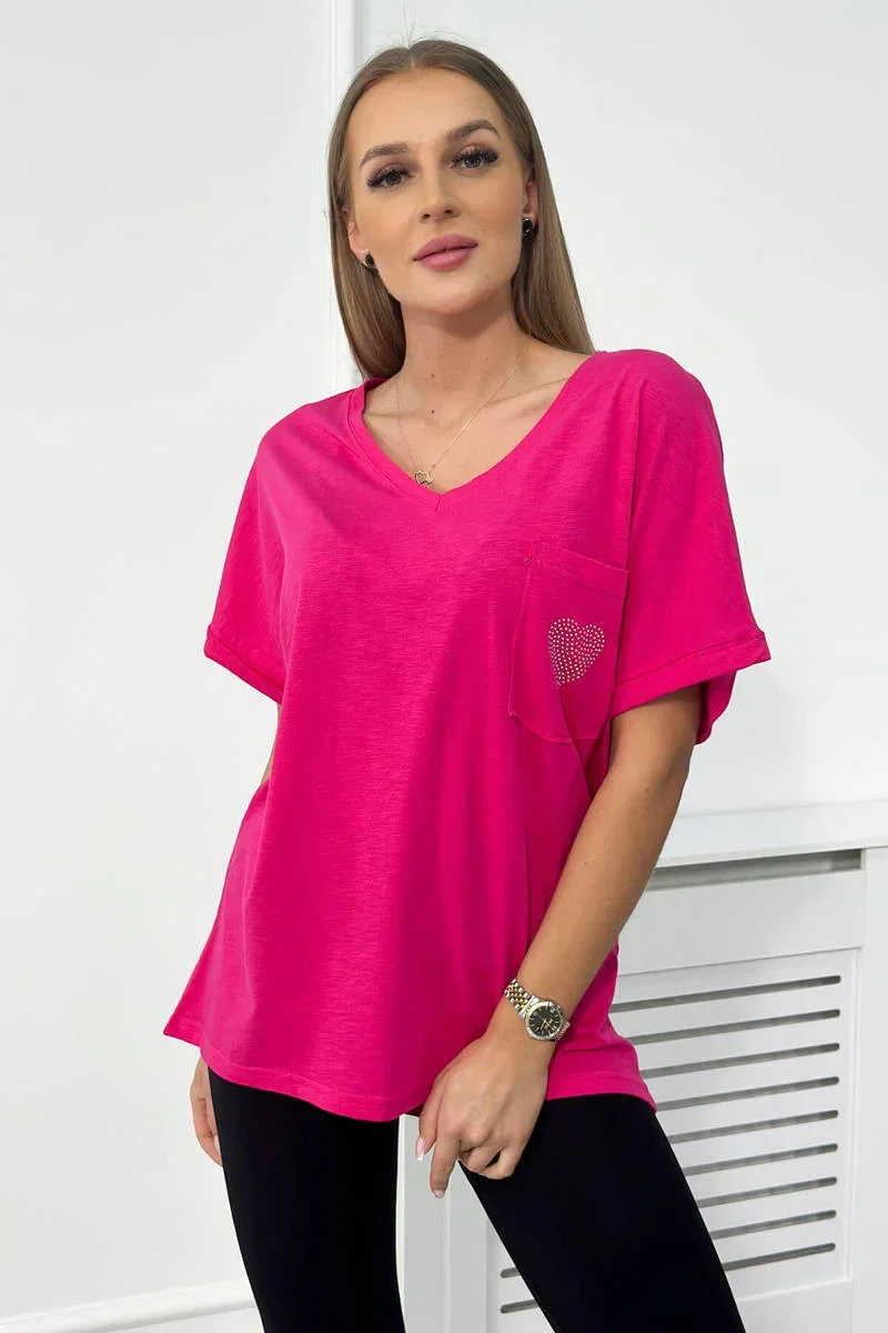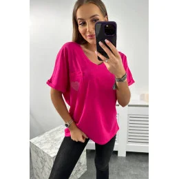 Bavlněná halenka s kapsou fuchsiová
