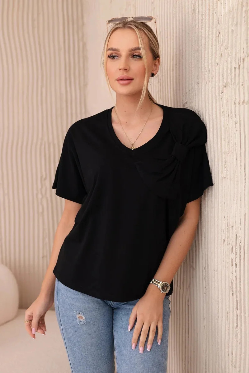 Bavlněná halenka s ozdobnou mašlí černý