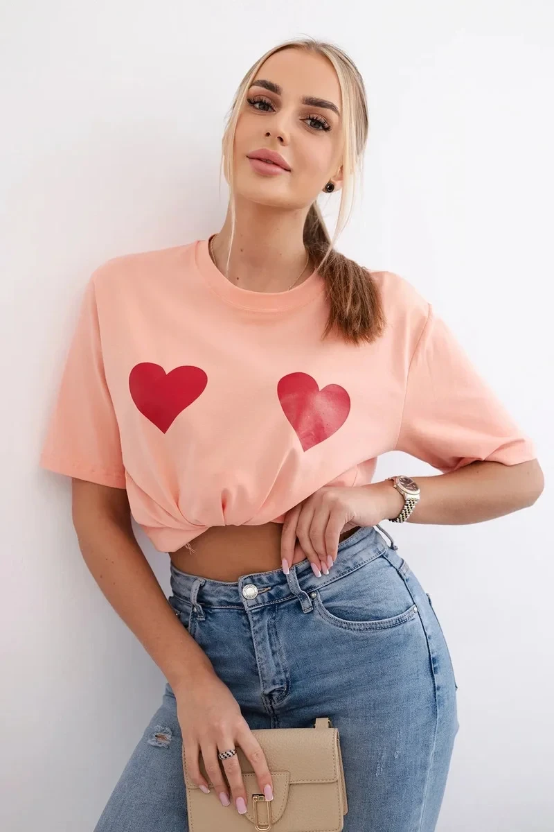 Bavlněná halenka s potiskem srdce meruňka