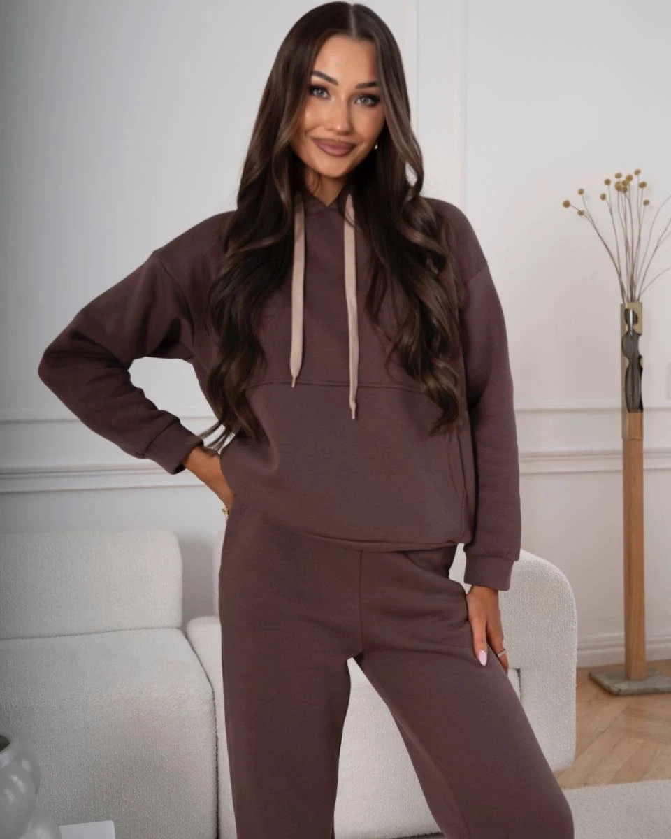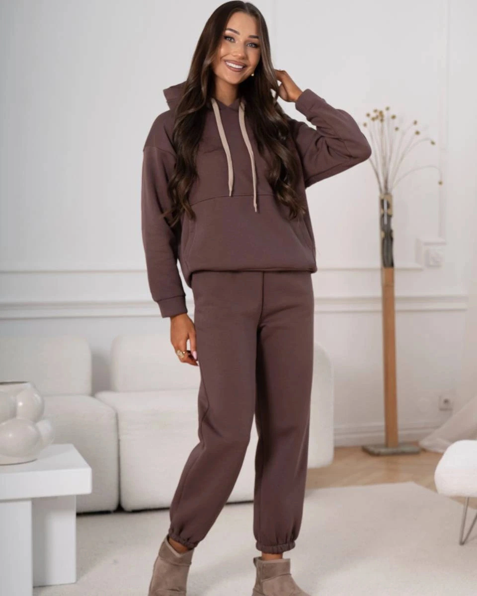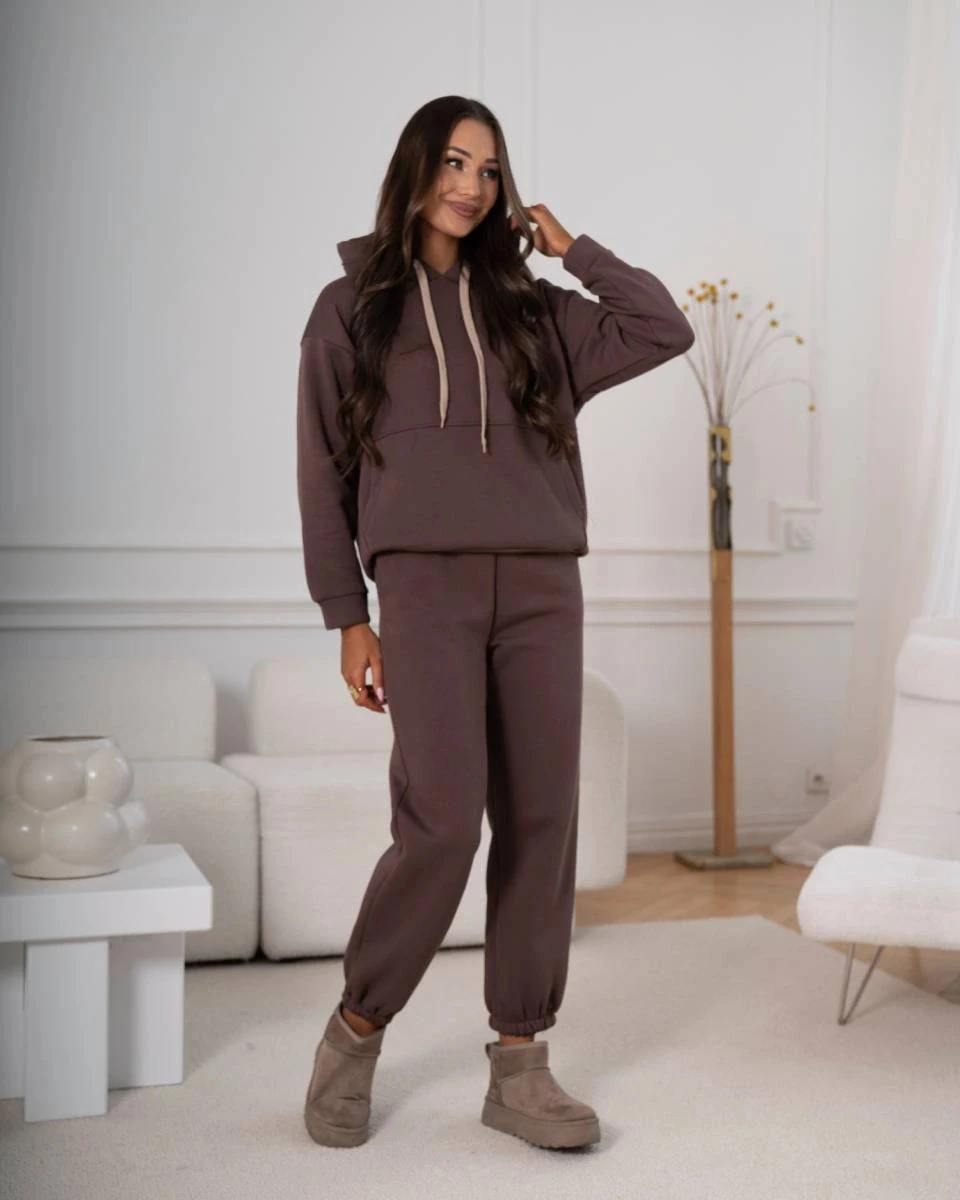 Bavlněná hrubší dámská tepláková souprava v čokoládové barvě (82143)