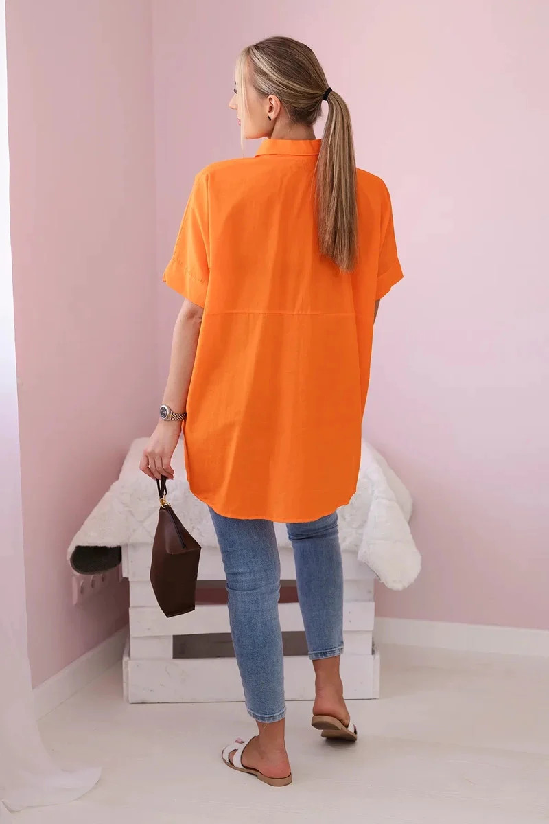 Bavlněná košile s krátkým rukávem je perfektní volbou do teplých dnů, spojuje eleganci s pohodlím. Košile vyrobená z vysoce kvalitní bavlny poskytuje nejen příjemný pocit na pokožce, ale také dobrou ventilaci a volnost pohybu. Krátký rukáv dodává košili lehkost a dodává jí ležérní charakter, díky čemuž se skvěle hodí jak do práce, tak na neformální schůzky nebo ven. Univerzální střih dělá z bavlněné košile s krátkým rukávem nenahraditelný prvek v šatníku každé ženy, která si cení stylu a pohodlí. Velikost je univerzální a bude vhodná pro ženy, které nosí velikost S, M nebo L.