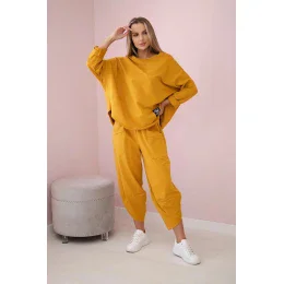Italská souprava je kombinací elegance a pohodlí, která se hodí pro mnoho příležitostí. Tato látka je nejen měkká a příjemná na dotek, ale také krásně vypadá. Mikina je dokonalým kouskem oblečení jak pro každodenní nošení, tak pro speciální příležitosti. Můžete jej nosit samostatně nebo kombinovat s jiným kouskem oblečení a vytvořit tak mimořádně stylový outfit. Kalhoty jsou perfektním doplňkem soupravy. Jejich volný střih umožňuje volnost pohybu, díky čemuž jsou nejen stylové, ale také velmi pohodlné. Při výběru kalhot volíte pohodlí a eleganci v jednom. Italský set je vynikající volbou pro ty, kteří oceňují vysokou kvalitu a jedinečný styl. Ať už se chystáte na schůzku s přáteli, do práce nebo na večer, s touto sadou budete jistě vyčnívat z davu. Velikost je univerzální a padne ženám, které nosí velikost S, M nebo L.