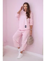 Bavlněná mikina kalhoty set tmavě růžová