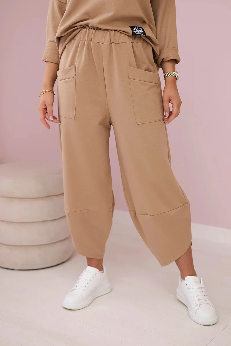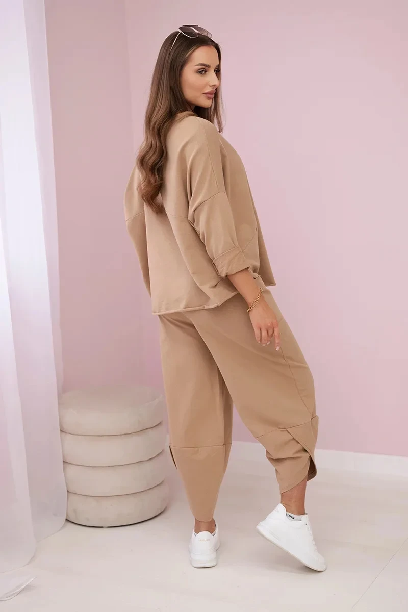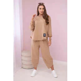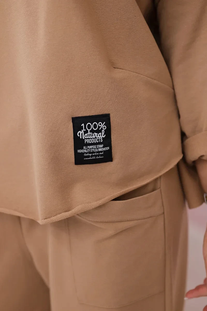 Bavlněná mikina kalhoty set Velbloud