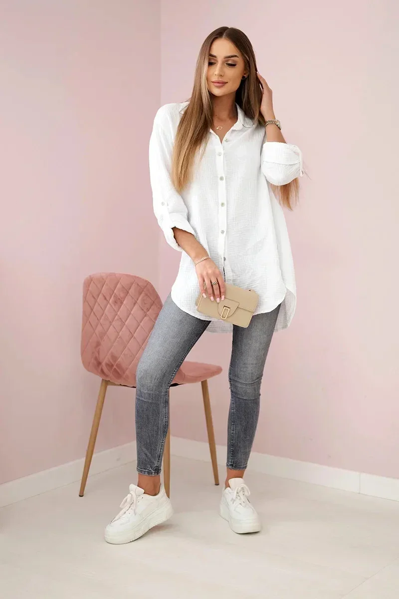 Bavlněná mušelínová košile oversize bílý