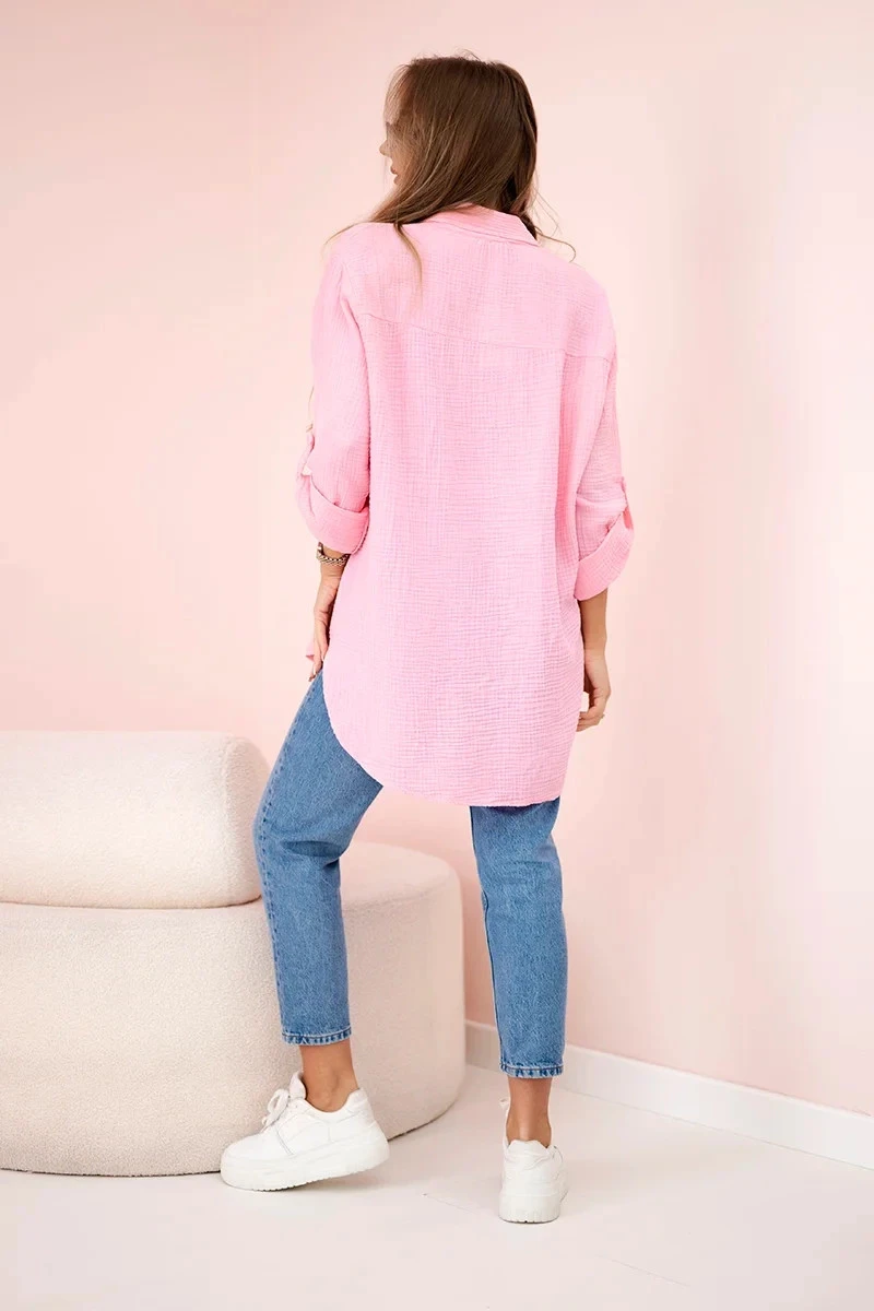 Bavlněná mušelínová košile oversize bonbónově růžová