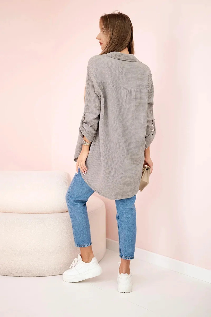 Bavlněná mušelínová košile oversize model 21908591 - K-Fashion