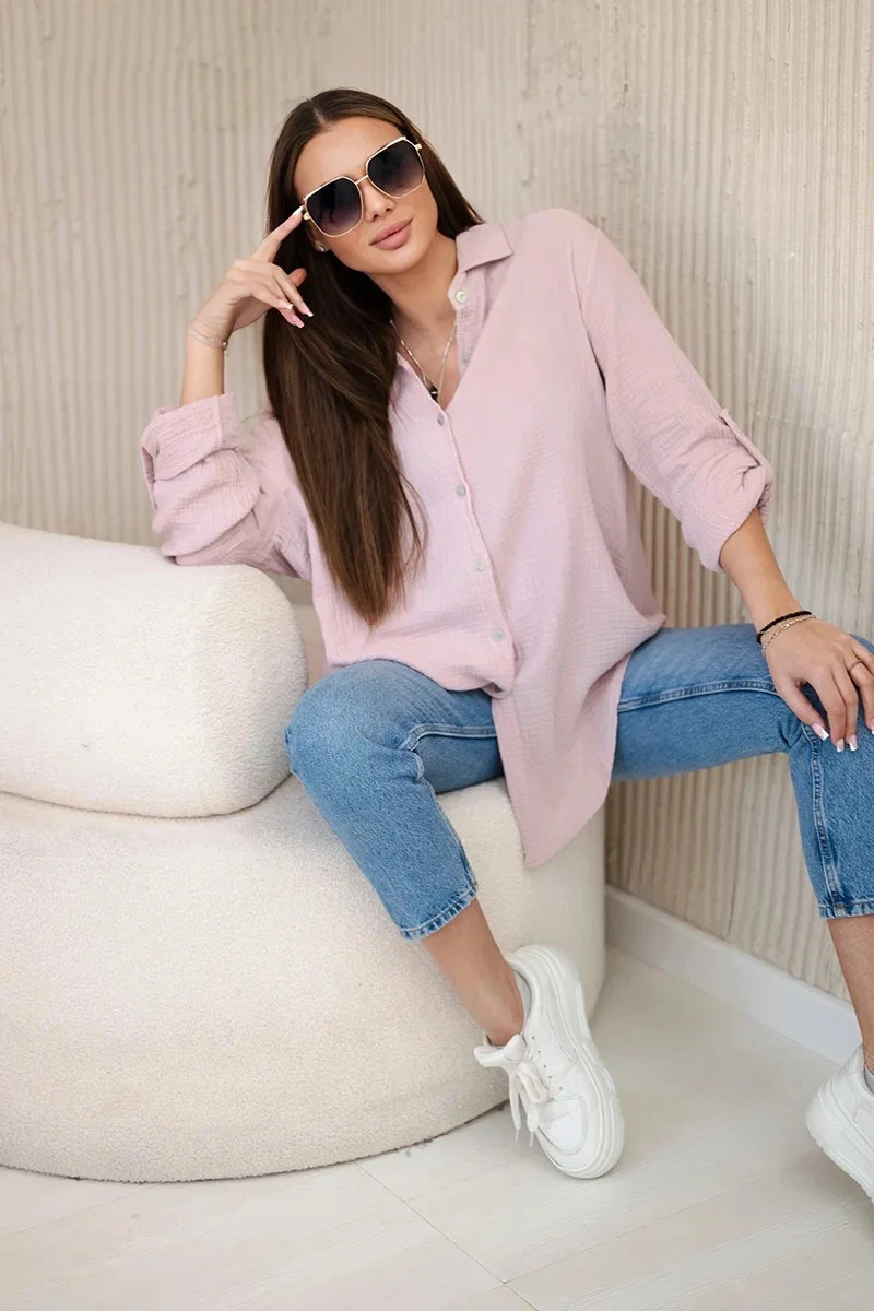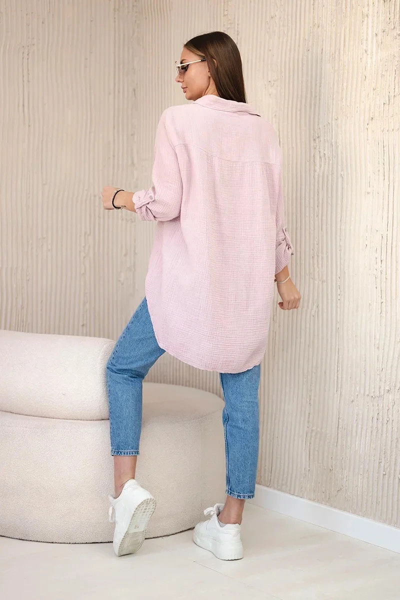 Bavlněná mušelínová košile oversize tmavě pudrově růžová