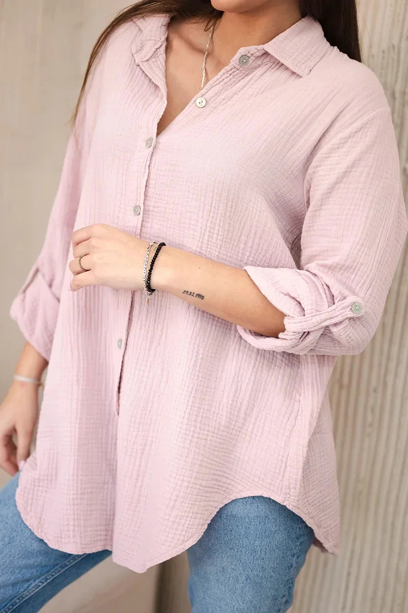 Oversize bavlněná mušelínová košile je ideální volbou pro ženy, které ocení pohodlí a styl. Vyrobeno ze vzdušného, prodyšného mušelínu, zajišťuje maximální komfort nošení zejména v teplejších dnech. Díky oversized střihu je neuvěřitelně univerzální – můžete ho nosit volně, převázaný páskem nebo jako lehkou zavinovačku. Košile se perfektně hodí jak k džínům, tak k elegantním kalhotám nebo sukni, takže bude fungovat v mnoha stylech - od každodenních až po sofistikovanější. Jemná struktura mušelínu mu dodává jemnou eleganci a přírodní bavlna umožňuje pokožce dýchat. Nezbytné v každém šatníku – klasické, pohodlné a nadčasové. Perfektní pro každé roční období. Velikost je univerzální a sedne ženám ve velikostech S, M nebo L.