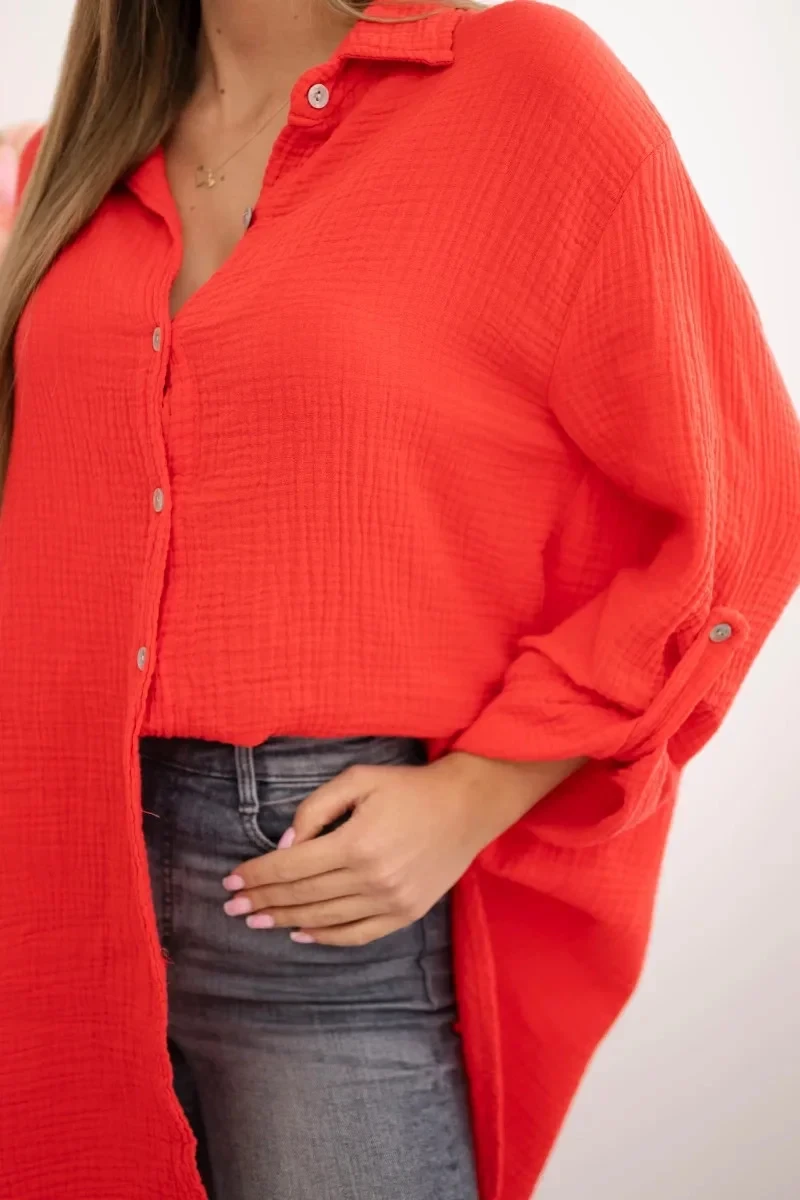 Mušelínová košile je esencí pohodlí a nadčasové elegance. Vyrobena z lehkého, prodyšného mušelínu, je ideální pro každé roční období, zajišťuje komfort nošení a volnost pohybu. Její univerzální střih se skvěle hodí jak pro každodenní, tak i pro formální outfity. Jemná textura materiálu dodává košili jemný půvab a precizní zpracování podtrhuje vysokou kvalitu provedení. Mušelínová košile je povinnou součástí šatníku pro ty, kteří oceňují kombinaci klasiky a moderního stylu. Velikost je univerzální a bude vhodná pro ženy nosící velikosti S, M nebo L.