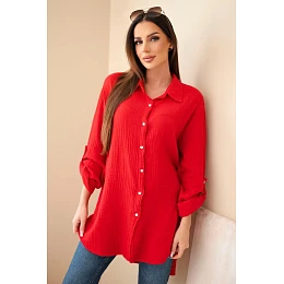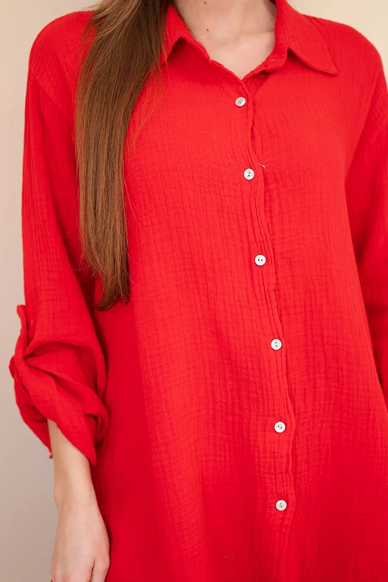 Bavlněná mušelínová košile Plus Size světle bordová