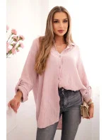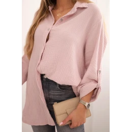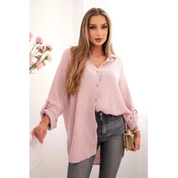 Bavlněná mušelínová košile Plus Size tmavě pudrově růžová