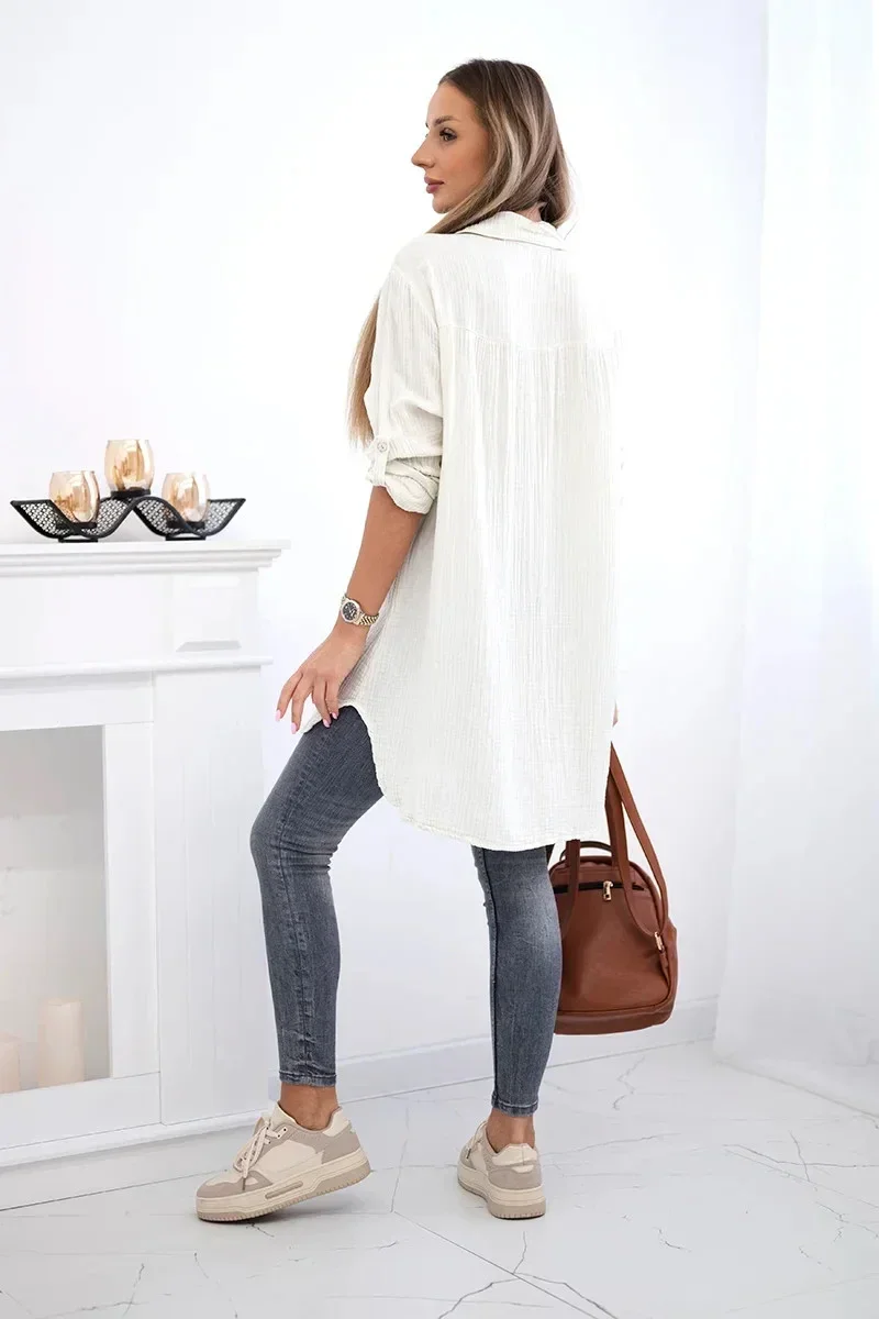 Mušelínová košile je esencí pohodlí a nadčasové elegance. Vyrobena z lehkého, prodyšného mušelínu, je ideální pro každé roční období, zajišťuje komfort nošení a volnost pohybu. Její univerzální střih se skvěle hodí jak pro každodenní, tak i pro formální outfity. Jemná textura materiálu dodává košili jemný půvab a precizní zpracování podtrhuje vysokou kvalitu provedení. Mušelínová košile je povinnou součástí šatníku pro ty, kteří oceňují kombinaci klasiky a moderního stylu. Velikost je univerzální a bude vhodná pro ženy nosící velikosti S, M nebo L.