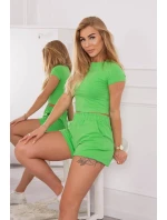 Bavlněná souprava s kraťasy světle zelená