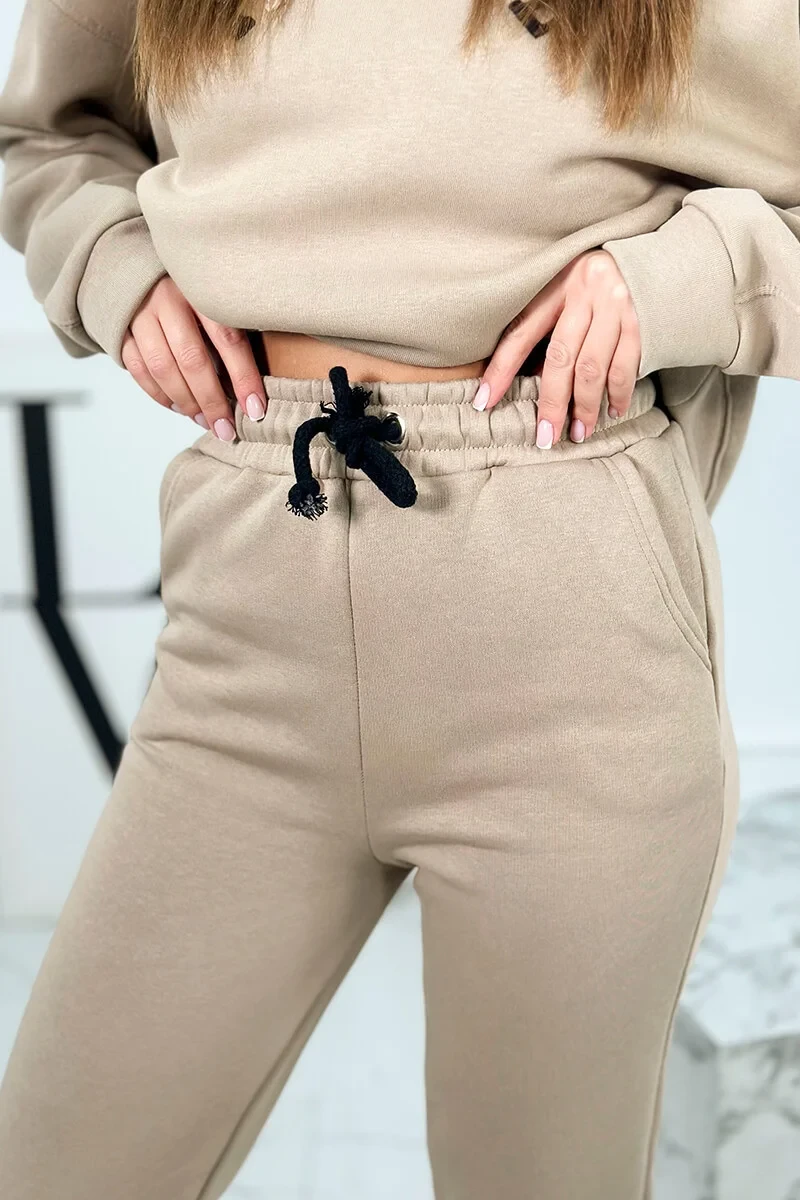 Bavlněná souprava s vyšívaným nápisem Paradise světle béžová