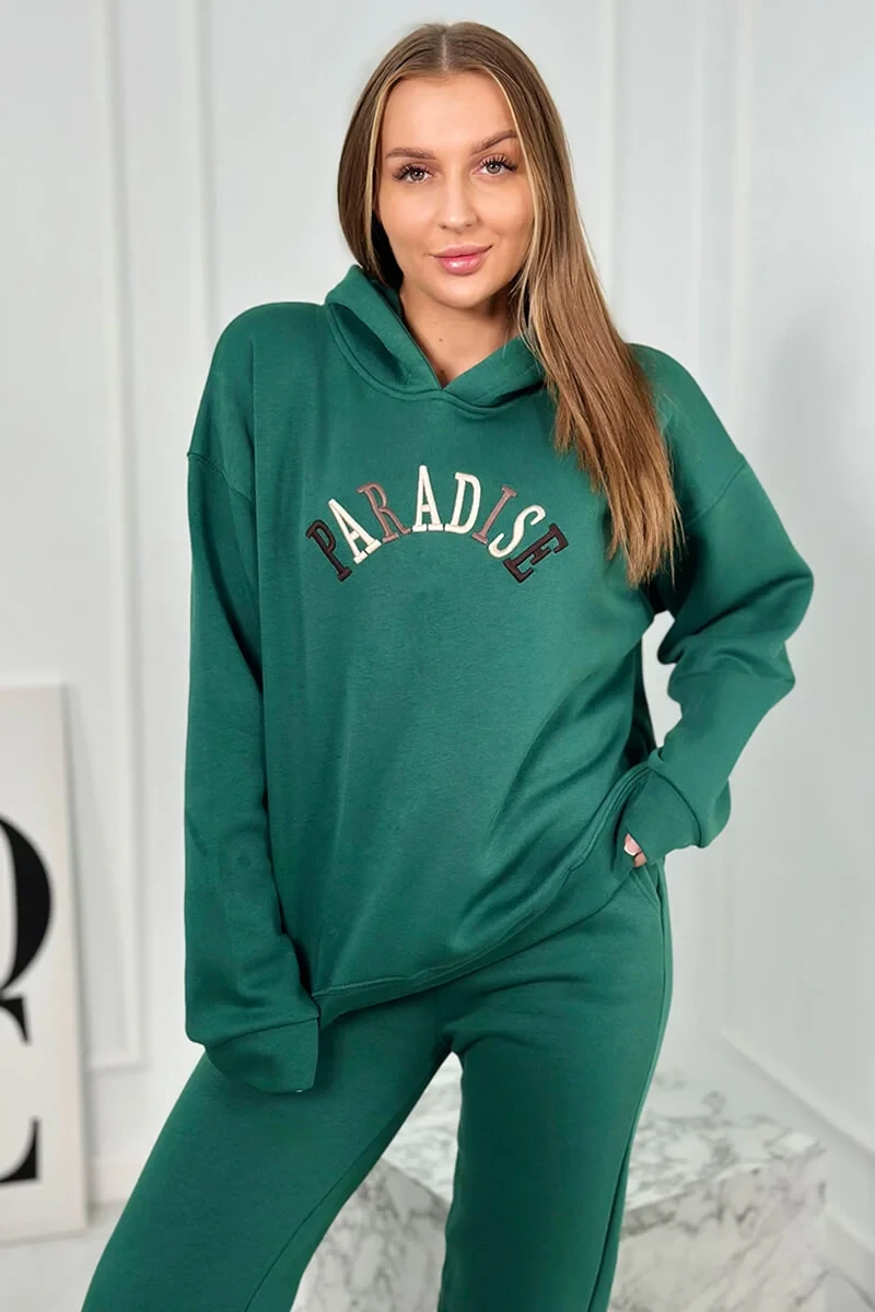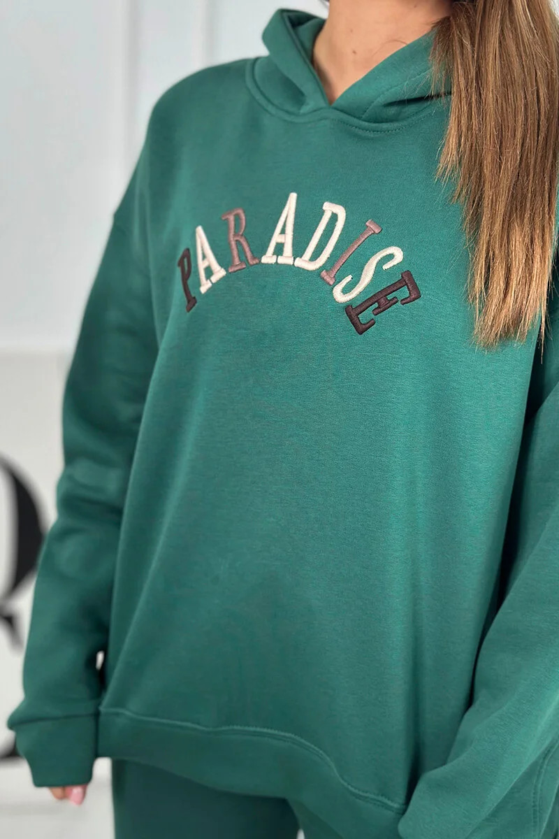 Bavlněná souprava s vyšívaným nápisem Paradise zelený