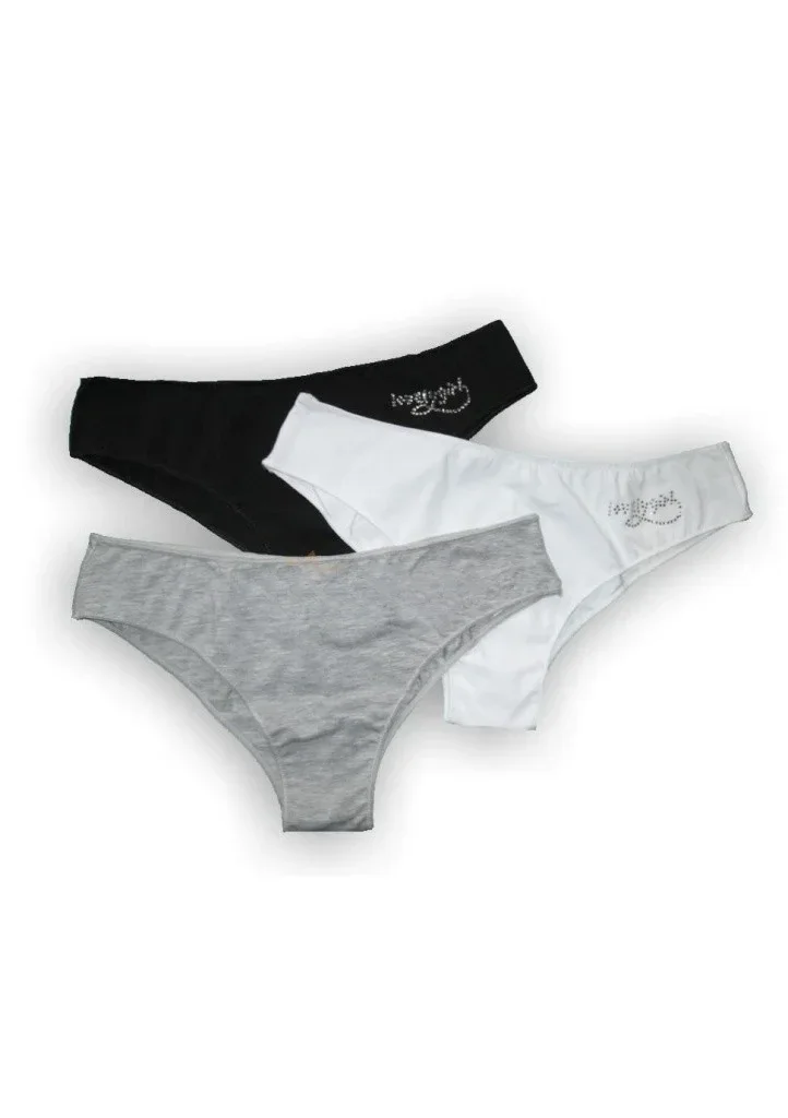 Dámské brazilky značky Lovelygirl. Velmi oblíbené brazilky v bílé, šedé nebo černé barvě jsou vyrobeny z bavlny a modalu (přírodní vlákno v základu vyráběné z bukového dřeva, které dodává látce dokonalou pružnost, jemnost a hedvábný lesk, a ani při opakovaném praní kalhotky neztrácí tyto užitné vlastnosti). Vlákno modalu má dokonalou nasákavost a schopnost rychle odvádět pot od povrchu těla, což oceníte při celodenním nošení. V přední části mají brazilky nažehlené blyštivé kamínky loga LOVELYGIRL. Zadní část kalhotek je prostřižena a dokonale sedí na zadečku. Uvnitř kalhotek je vsazen bavlněný klínek. Kalhotky jsou na dotek hladké a velmi příjemné.