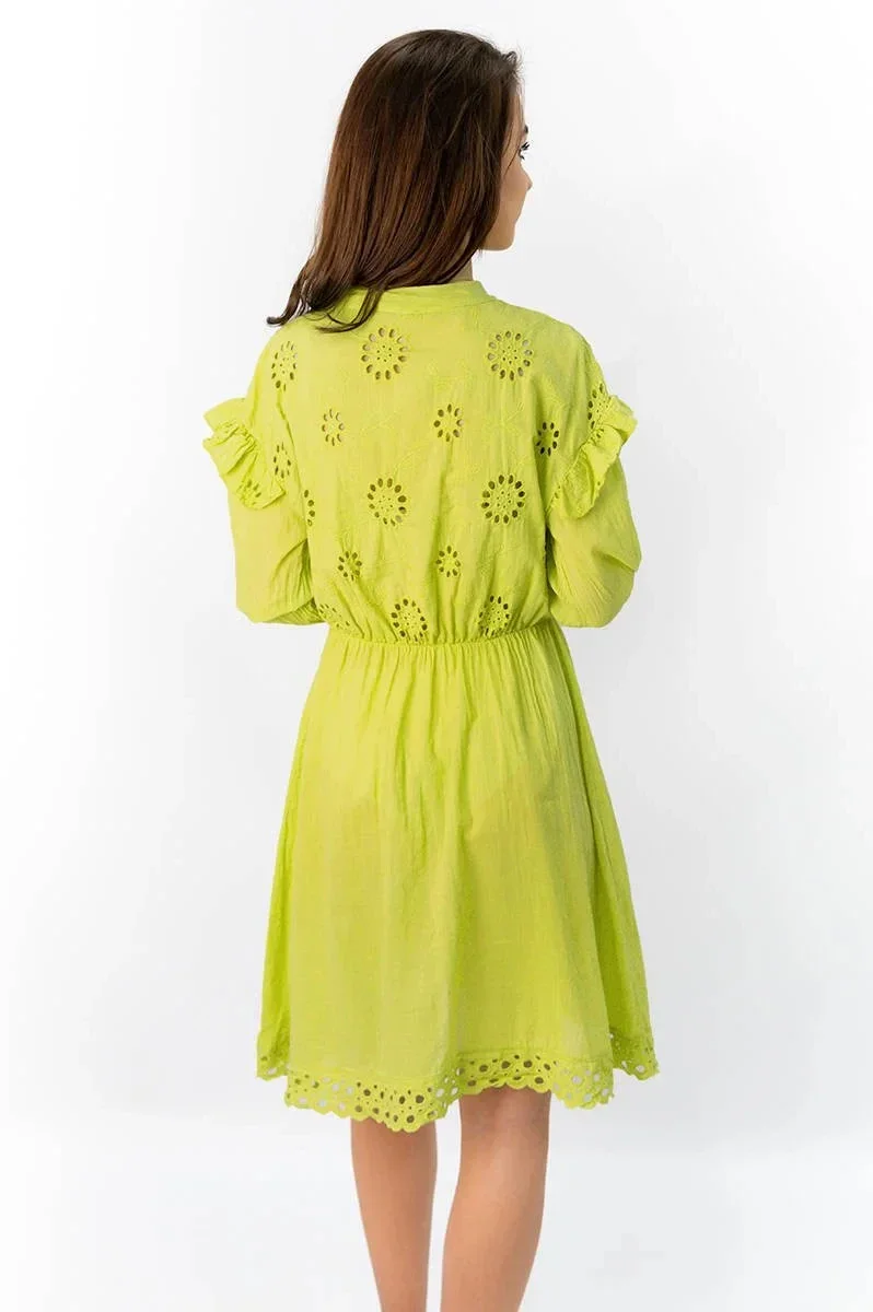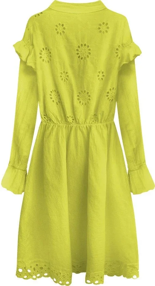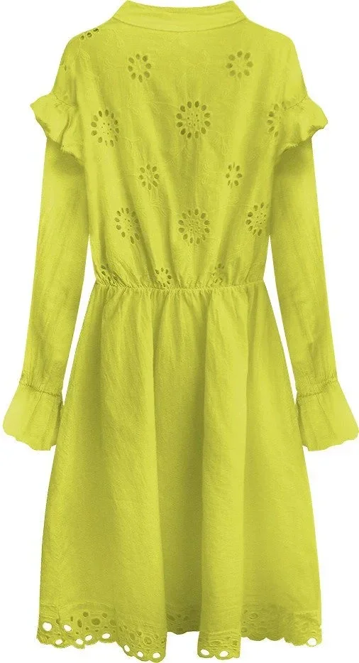 Bavlněné dámské šaty v limetkové barvě s výšivkou (303ART)