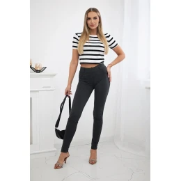 Bavlněné kalhoty se zirkony na grafit model 20592392 - K-Fashion