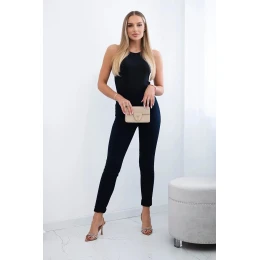 Bavlněné kalhoty se zirkony na námořnická modř model 20592388 - K-Fashion