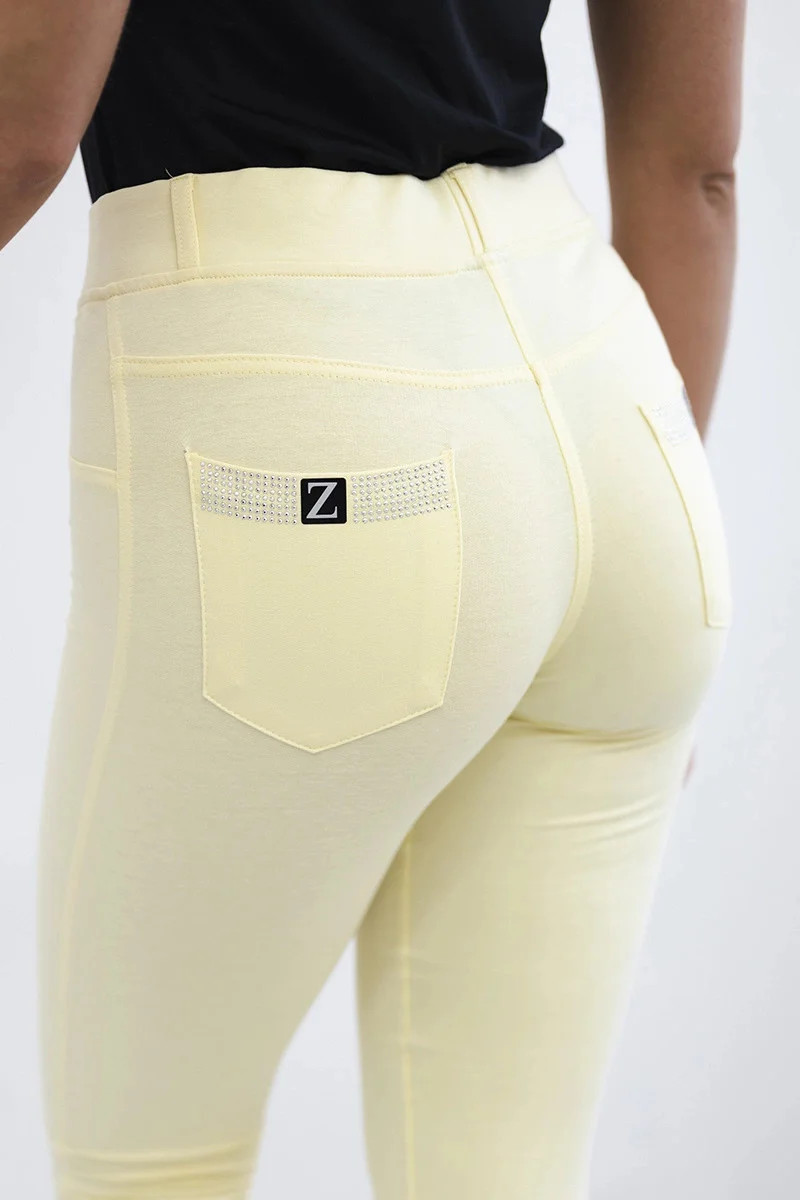 Bavlněné kalhoty se zirkony na žlutý model 20592396 - K-Fashion