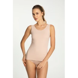 Koszulka Cotton Mood Tank Top to klasyczny, gładki top damski na szerokich ramiączkach, który łączy minimalistyczny design z nowoczesną technologią wykonania. Wykończenie w technologii Laser Cut (laserowo cięte krawędzie) zapewnia idealnie gładkie brzegi bez widocznych szwów, dzięki czemu koszulka doskonale układa się na ciele i nie odznacza się pod ubraniem. Wysokiej jakości bawełna (85%) gwarantuje przewiewność, miękkość i komfort noszenia przez cały dzień, natomiast dodatek elastanu (15%) odpowiada za elastyczność oraz perfekcyjne dopasowanie do sylwetki. Tank top świetnie sprawdzi się zarówno jako podkoszulek pod koszulę, marynarkę czy sweter, jak i samodzielny element letniej stylizacji. Gładka struktura materiału sprawia, że to uniwersalna koszulka damska, idealna do codziennego użytku, pracy, domu czy na aktywny dzień. Cotton Mood Tank Top to połączenie wygody, trwałości i nowoczesnego wykończenia.