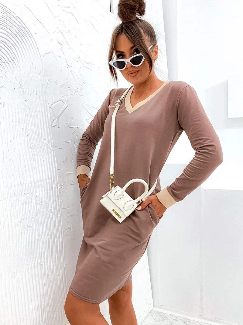 Bavlněné šaty v barvě cappuccino s ozdobnými stahovacími lemy model 20302363 - Moon
