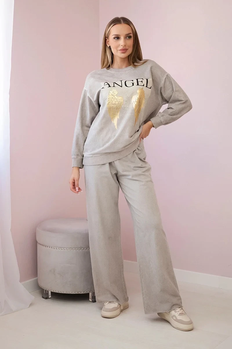 Bavlněný set Angel sestávající z mikiny a kalhot je dokonalou kombinací stylu a pohodlí. Vyrobeno z měkké, vysoce kvalitní bavlny, zajišťuje pohodlí při nošení po celý den. Obnošený efekt dodává soupravě módní, lehce vintage vzhled, který vynikne při každodenním stylingu. Mikina má volný střih, který se skvěle hodí k pohodlným kalhotám s elastickým pasem. Sada je ideální pro dny odpočinku doma i na venčení a nabízí stylový, ležérní vzhled. Velikost je univerzální a bude vhodná pro ženy velikosti S, M nebo L.