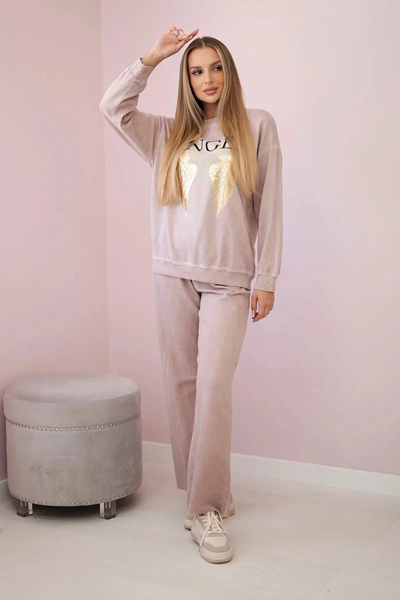 Bavlněný komplet Angel teplákové + kalhoty pudrově růžová
