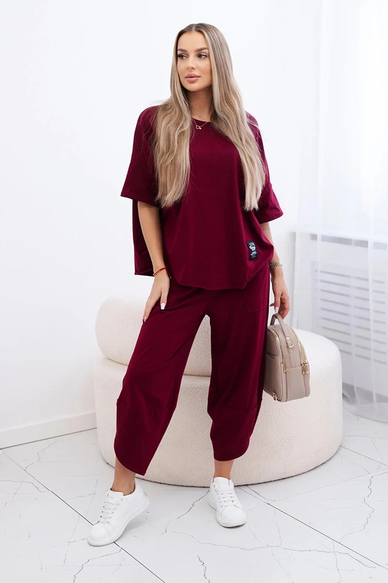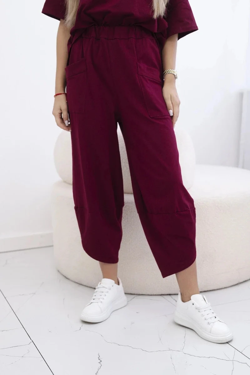 Bavlněný komplet halenka a kalhoty 6727 bordó - Kesi