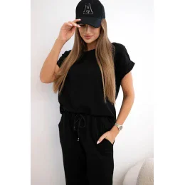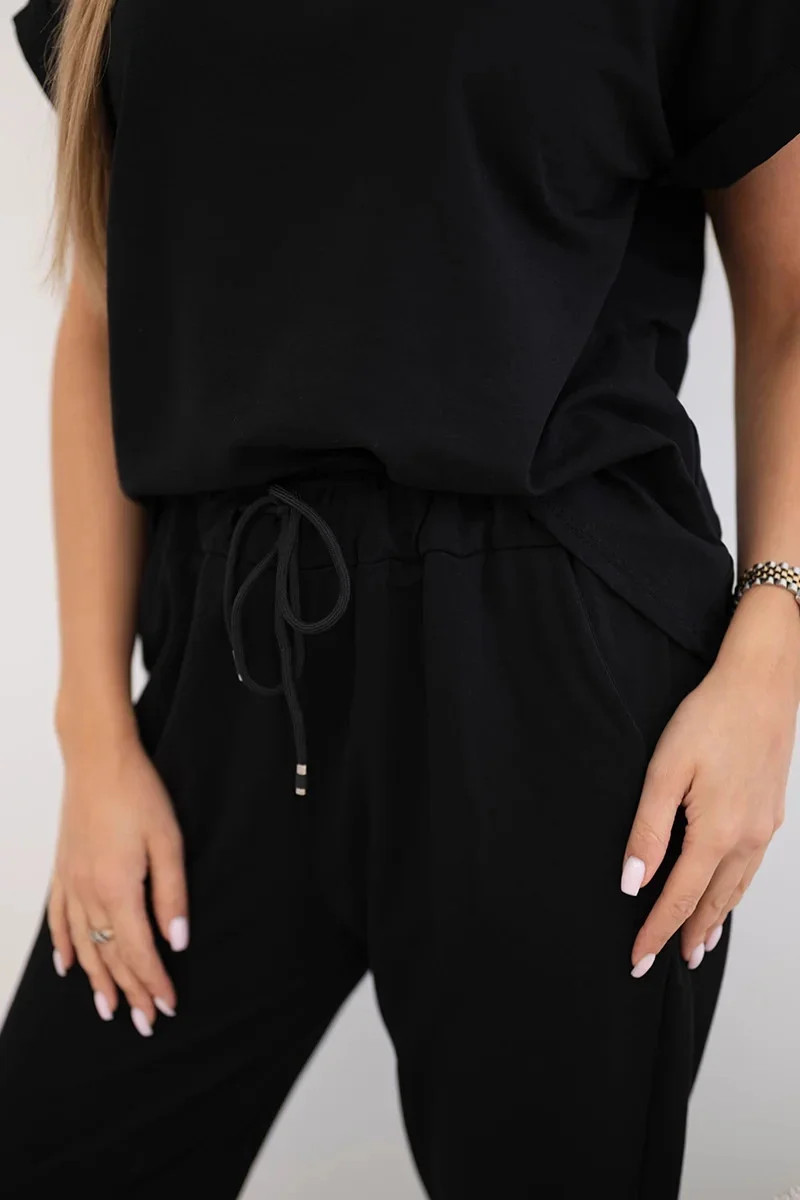 Bavlněný komplet halenka + kalhoty černý