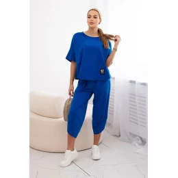 Bavlněný komplet halenka + kalhoty chrpově modrá