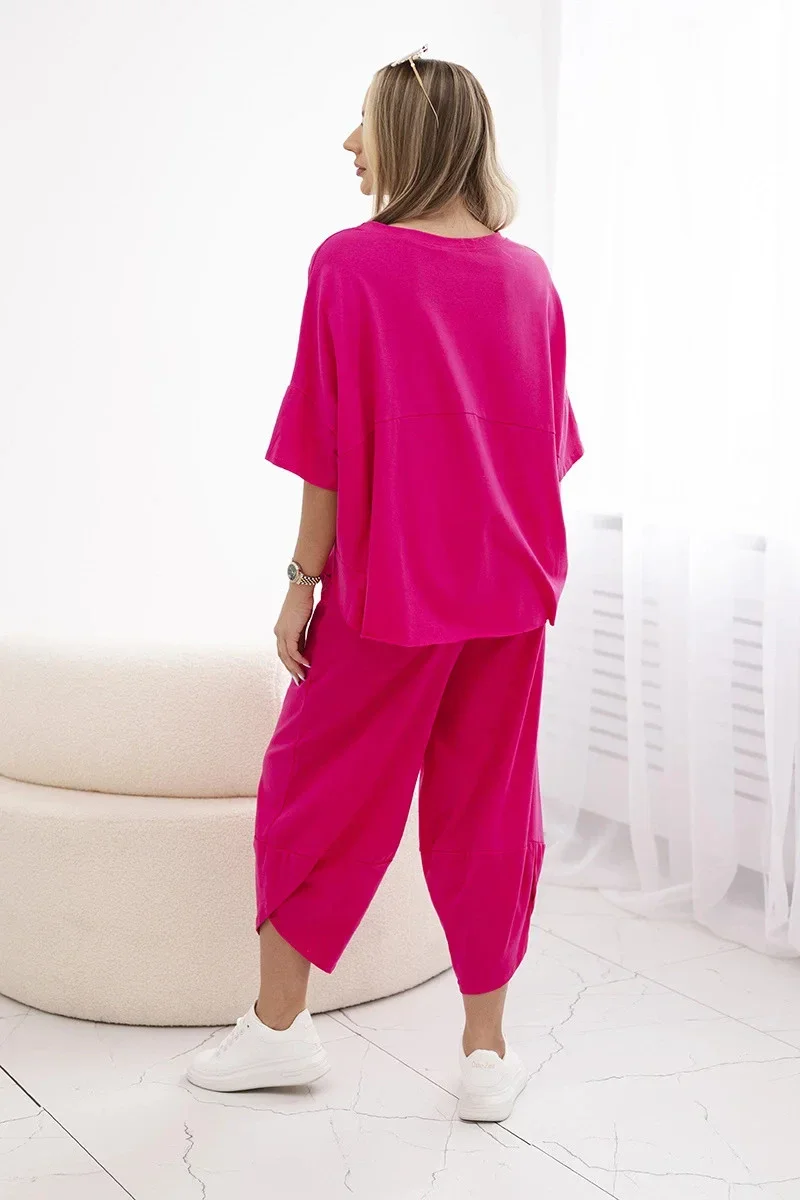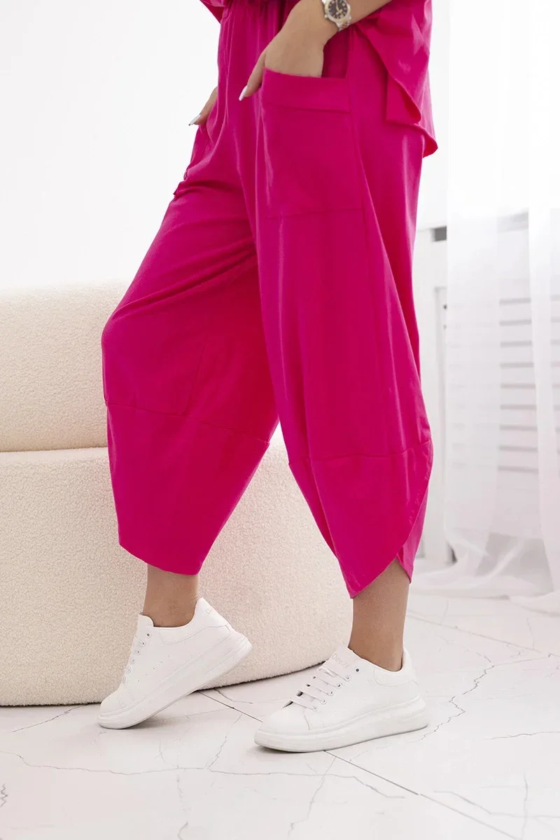 Italská souprava je kombinací elegance a pohodlí, která se dokonale hodí k mnoha příležitostem. Tato látka je nejen měkká a příjemná na dotek, ale také krásně vypadá. Halenka je dokonalým kouskem oblečení jak na každý den, tak na zvláštní příležitosti. Můžete jej nosit samostatně nebo kombinovat s jiným kouskem oblečení a vytvořit tak mimořádně stylový outfit. Kalhoty jsou perfektním doplňkem soupravy. Jejich volný střih umožňuje volnost pohybu, díky čemuž jsou nejen stylové, ale také velmi pohodlné. Při výběru kalhot volíte pohodlí a eleganci v jednom. Italský set je vynikající volbou pro ty, kteří oceňují vysokou kvalitu a jedinečný styl. Ať už jdete na schůzku s přáteli, do práce nebo na večer, s touto sadou budete jistě vyčnívat z davu. Velikost je univerzální a padne ženám, které nosí velikost S, M nebo L.