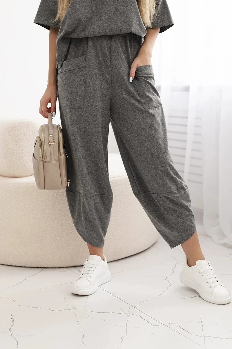 Italská souprava je kombinací elegance a pohodlí, která se dokonale hodí k mnoha příležitostem. Tato látka je nejen měkká a příjemná na dotek, ale také krásně vypadá. Halenka je dokonalým kouskem oblečení jak na každý den, tak na zvláštní příležitosti. Můžete jej nosit samostatně nebo kombinovat s jiným kouskem oblečení a vytvořit tak mimořádně stylový outfit. Kalhoty jsou perfektním doplňkem soupravy. Jejich volný střih umožňuje volnost pohybu, díky čemuž jsou nejen stylové, ale také velmi pohodlné. Při výběru kalhot volíte pohodlí a eleganci v jednom. Italský set je vynikající volbou pro ty, kteří oceňují vysokou kvalitu a jedinečný styl. Ať už jdete na schůzku s přáteli, do práce nebo na večer, s touto sadou budete jistě vyčnívat z davu. Velikost je univerzální a padne ženám, které nosí velikost S, M nebo L.