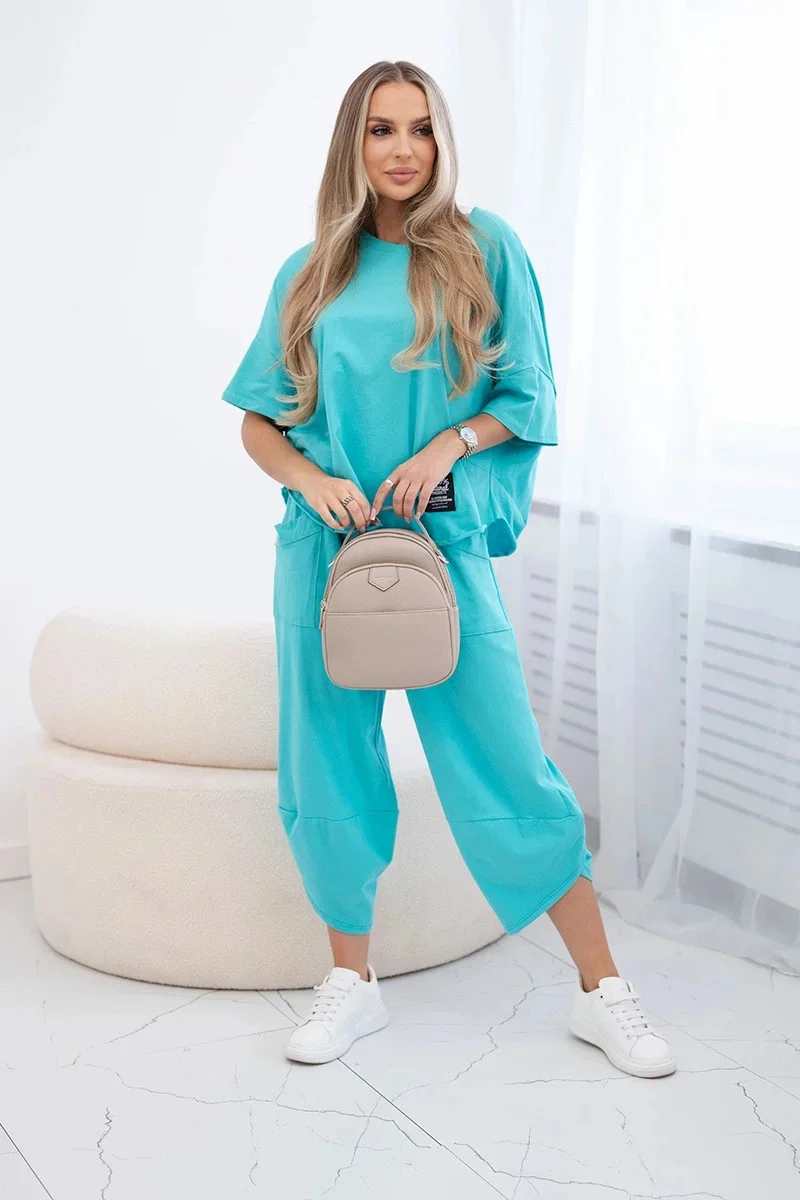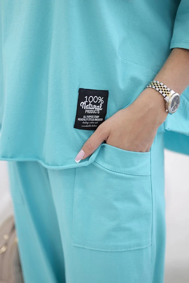 Italská souprava je kombinací elegance a pohodlí, která se dokonale hodí k mnoha příležitostem. Tato látka je nejen měkká a příjemná na dotek, ale také krásně vypadá. Halenka je dokonalým kouskem oblečení jak na každý den, tak na zvláštní příležitosti. Můžete jej nosit samostatně nebo kombinovat s jiným kouskem oblečení a vytvořit tak mimořádně stylový outfit. Kalhoty jsou perfektním doplňkem soupravy. Jejich volný střih umožňuje volnost pohybu, díky čemuž jsou nejen stylové, ale také velmi pohodlné. Při výběru kalhot volíte pohodlí a eleganci v jednom. Italský set je vynikající volbou pro ty, kteří oceňují vysokou kvalitu a jedinečný styl. Ať už jdete na schůzku s přáteli, do práce nebo na večer, s touto sadou budete jistě vyčnívat z davu. Velikost je univerzální a padne ženám, které nosí velikost S, M nebo L.