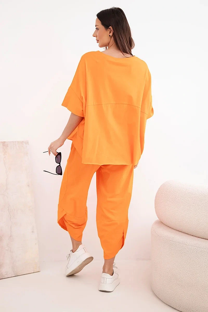 Bavlněný komplet halenka + kalhoty pomeranč