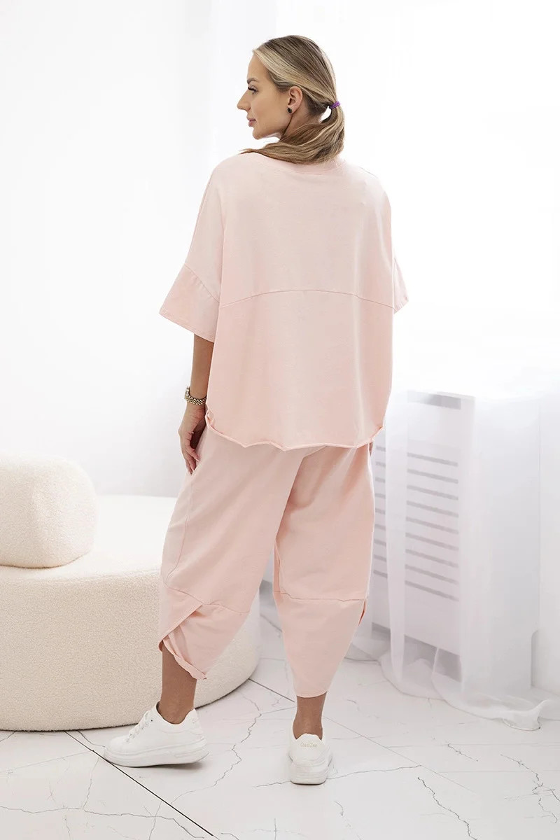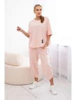 Bavlněný komplet halenka + kalhoty pudrově růžová
