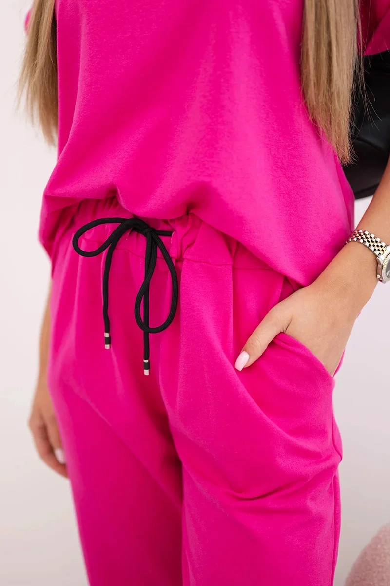 Bavlněný komplet halenka + kalhoty růžový