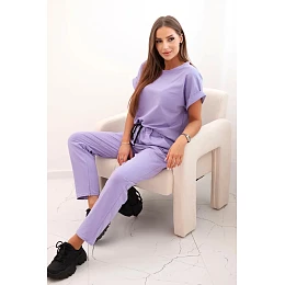 Bavlněný komplet halenka + kalhoty světlá fialová